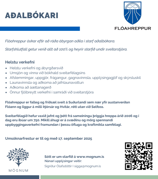 Nánari upplýsingar veita Sigríður Ólafsdóttir; sigga@mognum.is og Telma Eiðsdóttir; telma@mognum.is