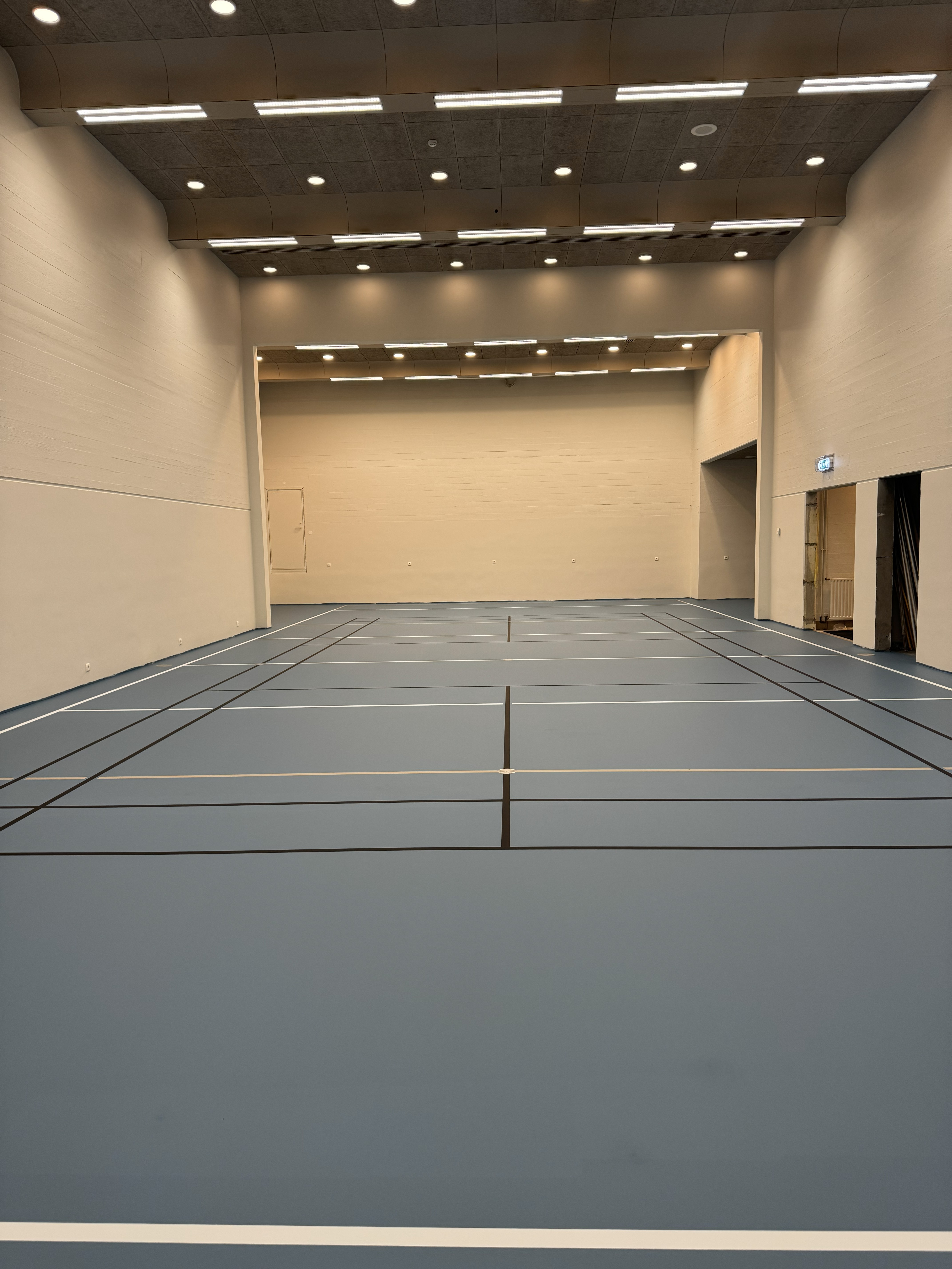 Einn stærsti hluti framkvæmdanna var að fjarlægja sjálft sviðið sem var steypt, opna sviðsopið, setja burðarbita í loftið og steypa nýja gólfplötu þar undir. Að auki hefur verið unnið mikið í rafmagni í salnum, loftið í öllum salnum málað, gömlum flúorljósum skipt út fyrir led ljós sem eru sérstaklega ætluð fyrir íþróttalýsingu, allir veggir málaðir og skipt um undirlag og dúk á gólfi. Nýtt hurðarop var sett á vesturvegg salarins fyrir rými sem ætlað er fyrir geymslu íþróttaáhalda og hurðarop út úr sal austanmegin var stækkað þannig að nú verður tvöföld hurð inn í salinn úr anddyrinu.